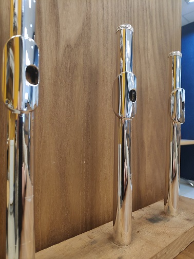 En bref, les flûtes Sankyo offrent trois sonorités distinctes allant de celle du flûtiste d’orchestre à celle du soliste. Cela est permis grâce à la maîtrise de la facture des têtes de flûte qui permet d’obtenir des profils de plaque différents suivant le son recherché :